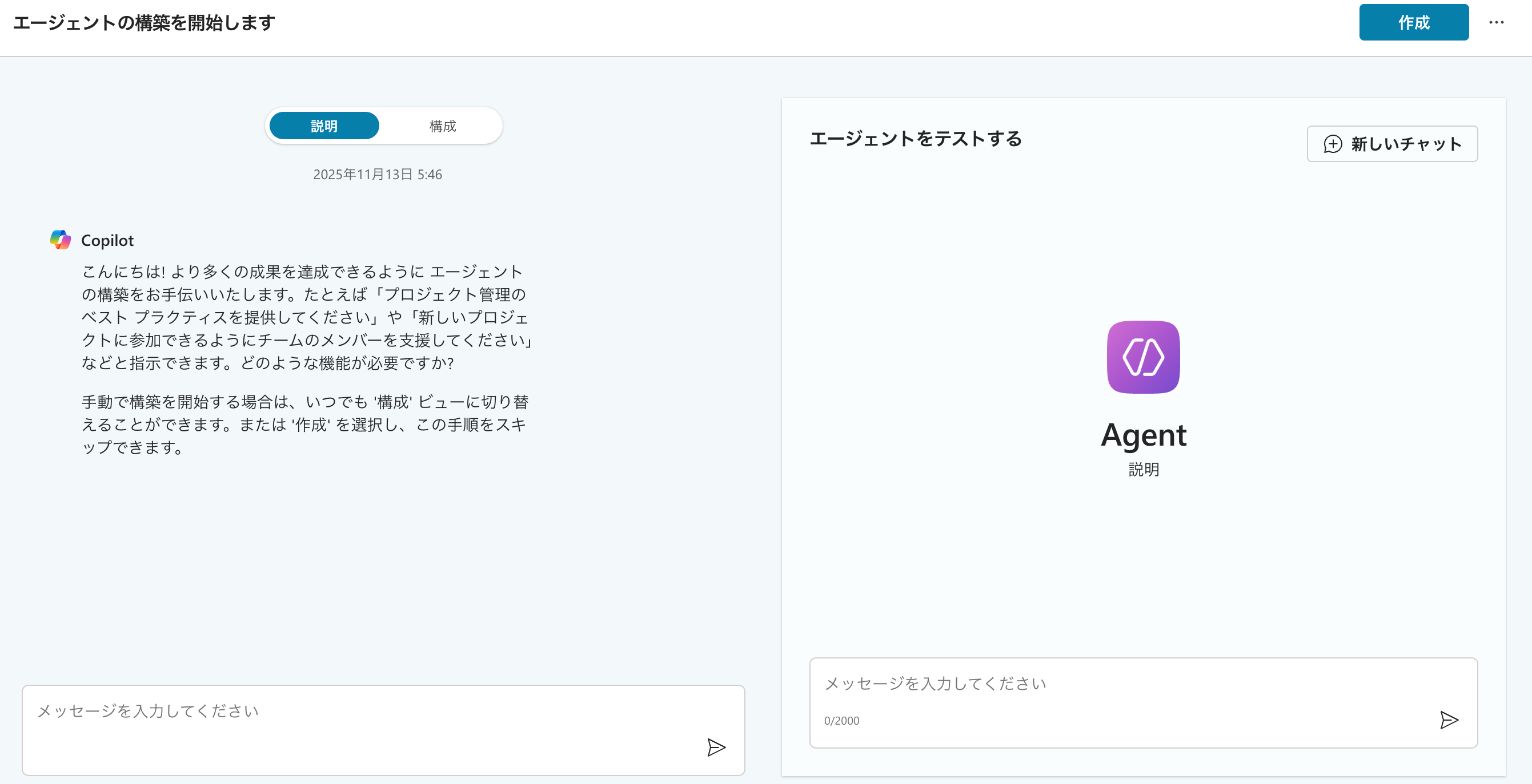 エージェントの新規作成