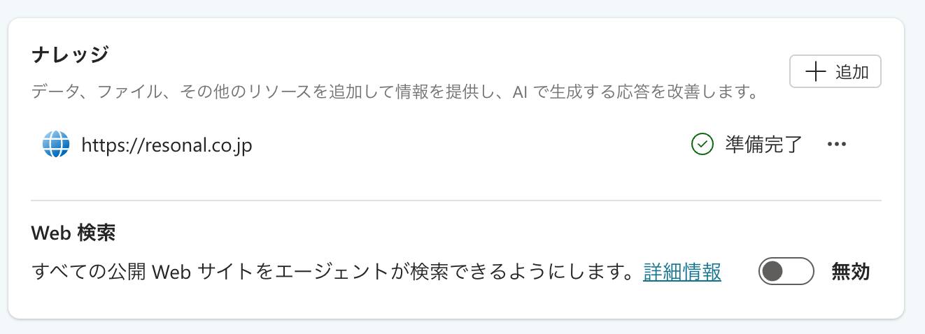 つまり、ナレッジとして提供されたWebサイトの下層のページからも情報を取得することが可能です。これがまず基本的なエージェントの作成方法です。ナレッジには他にも多くの情報源を登録することが可能です。