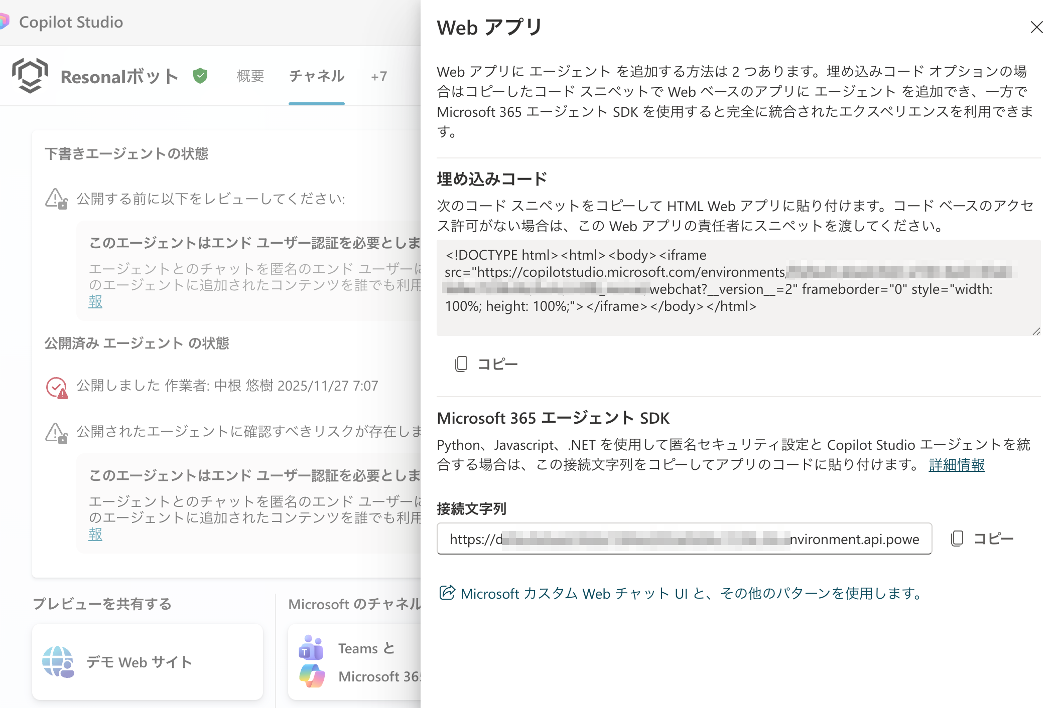 エージェントの公開