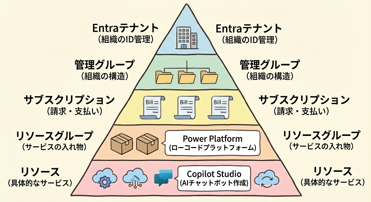 Azureの設定は、サブスクリプション、リソースグループ、請求プラン、複数の階層が絡み合っており、初めて設定する方にとっては少し複雑で難しく感じられるかもしれません。