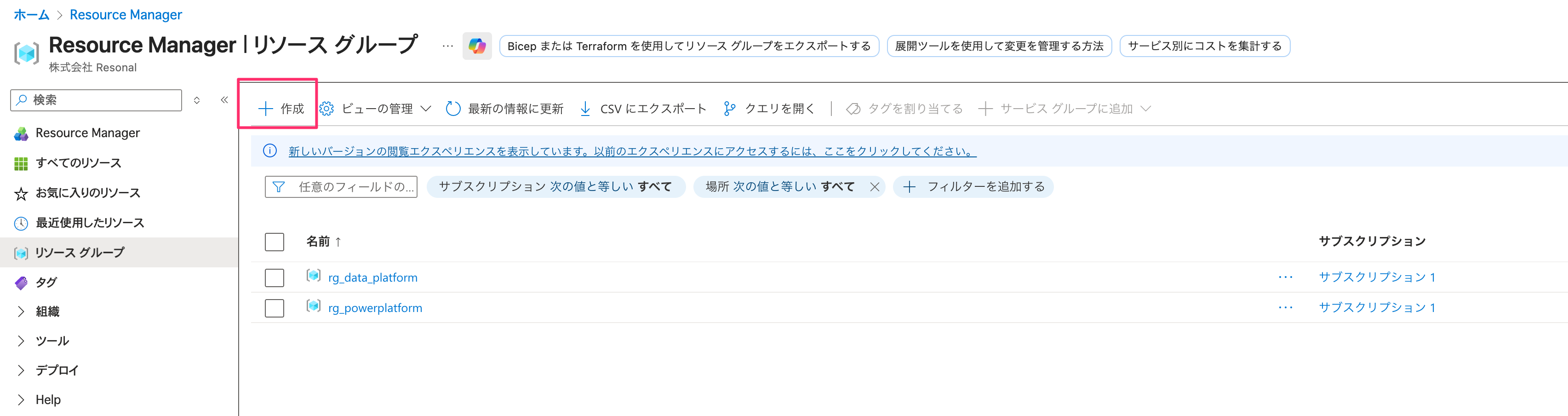 リソースグループの作成